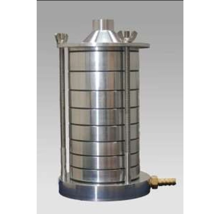 A typical stage is shown alongside. Nozzle rings are made of aluminium alloy of grade 6061, collection and impaction plates are of stainless steel, connecting adapters and fasteners are of brass. The unit is made leakproof with the use of neoprene gaskets